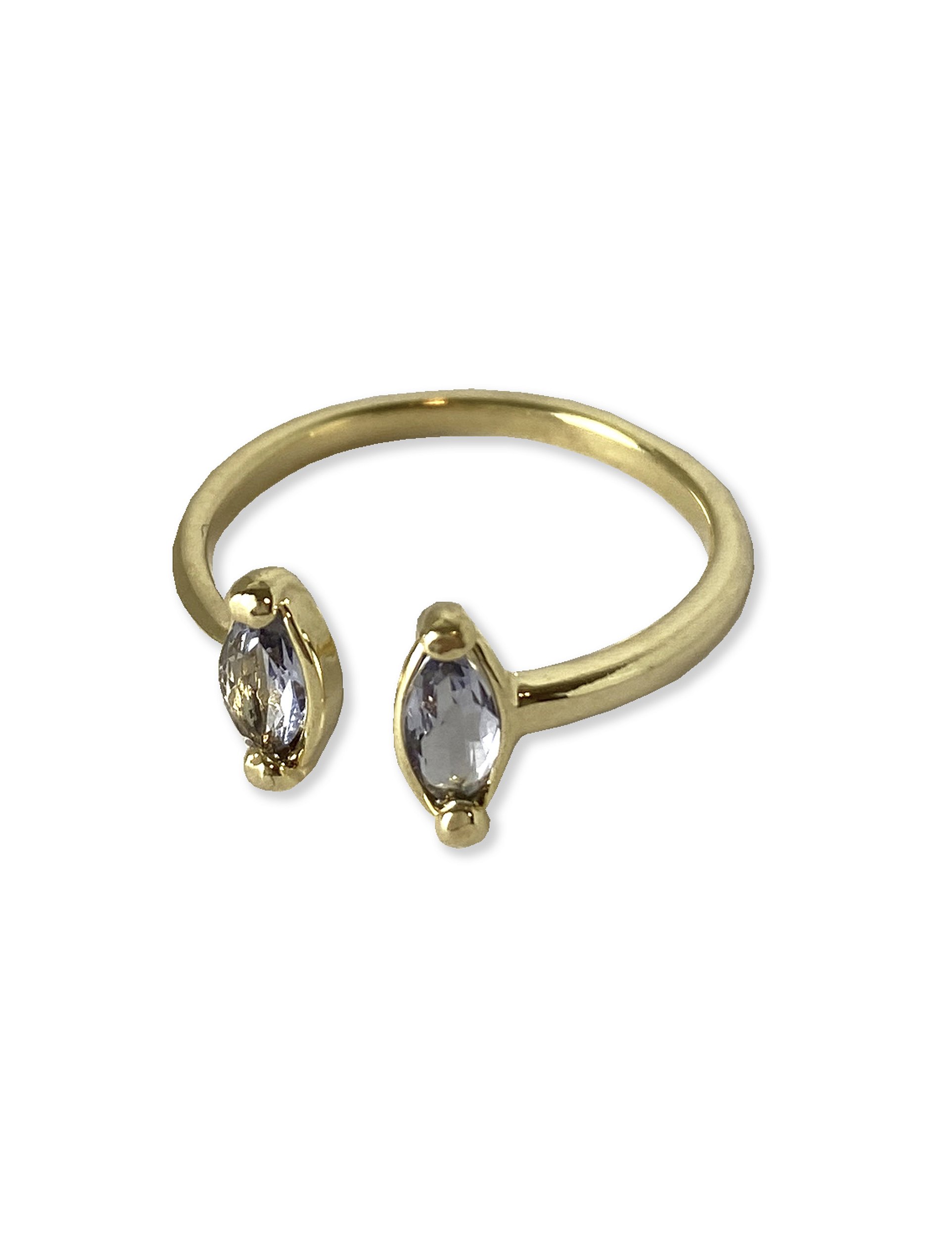Anel delicado banhado a ouro e antialérgico, com regulagem discreta na parte superior.