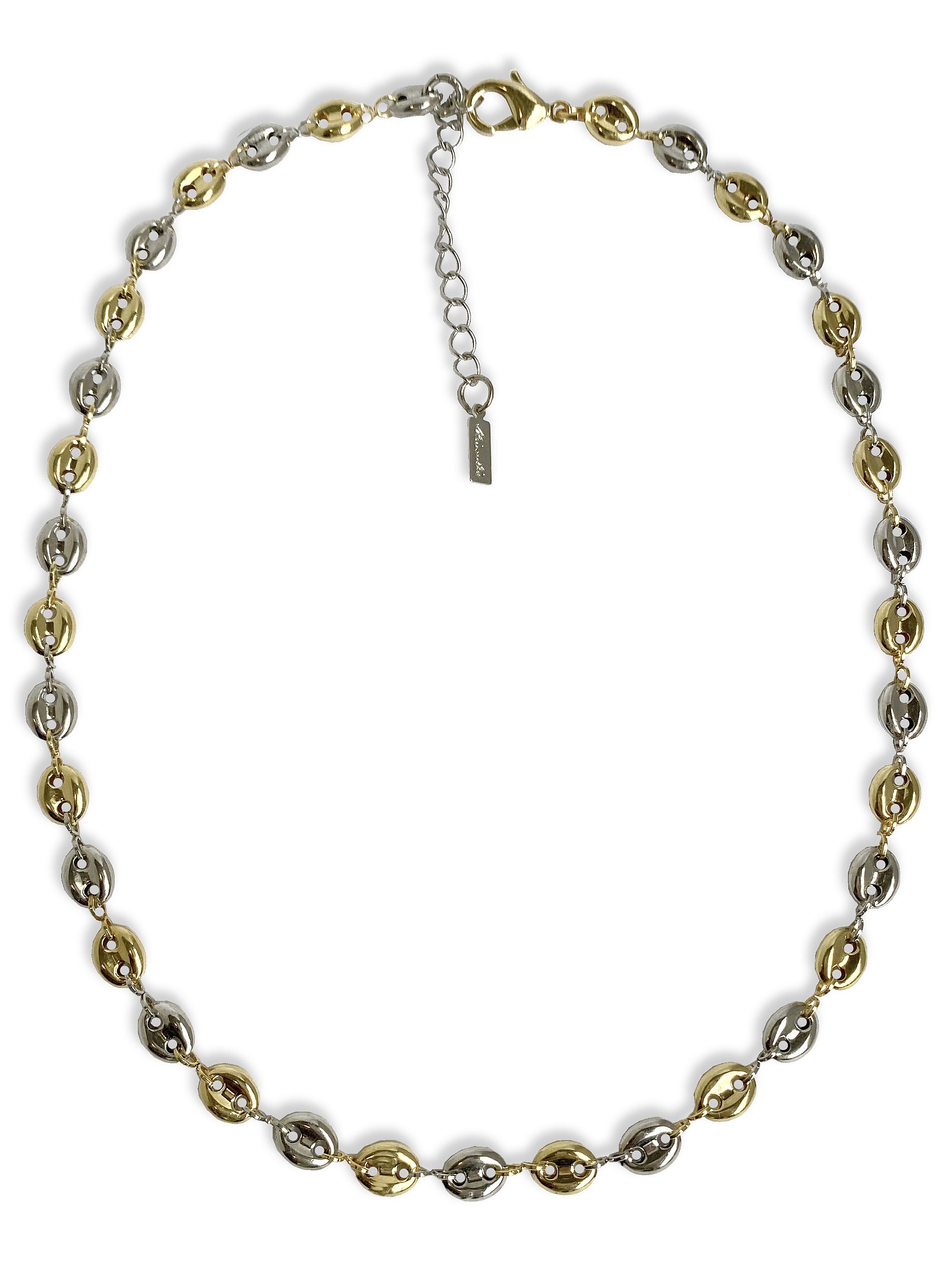 Colar médio que traz modernidade através da mistura dos banhos ouro e ródio branco, criando um contraste elegante e sofisticado.