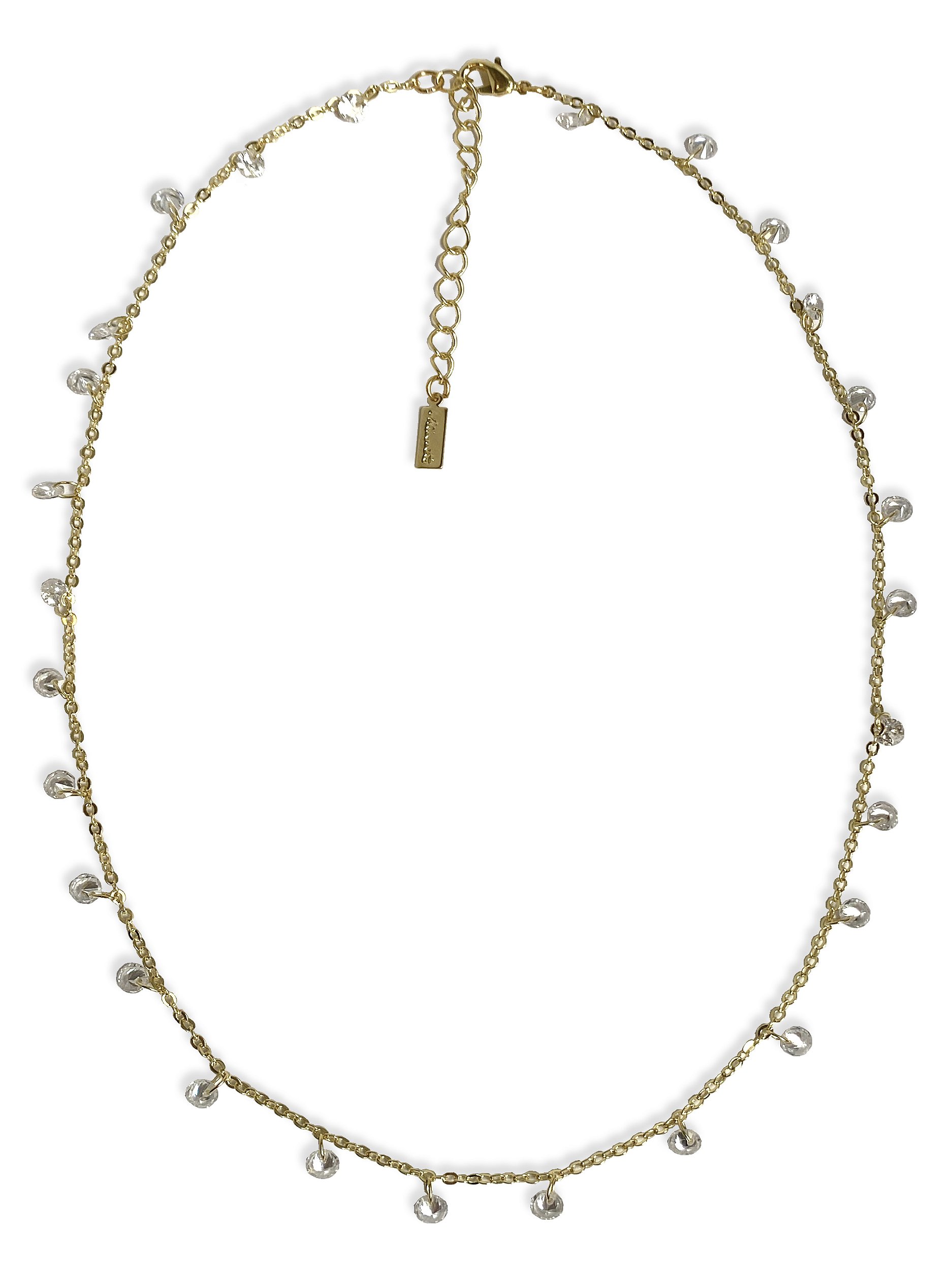 Colar delicado confeccionado com zircônias penduradas, banhado a ouro e antialérgico.