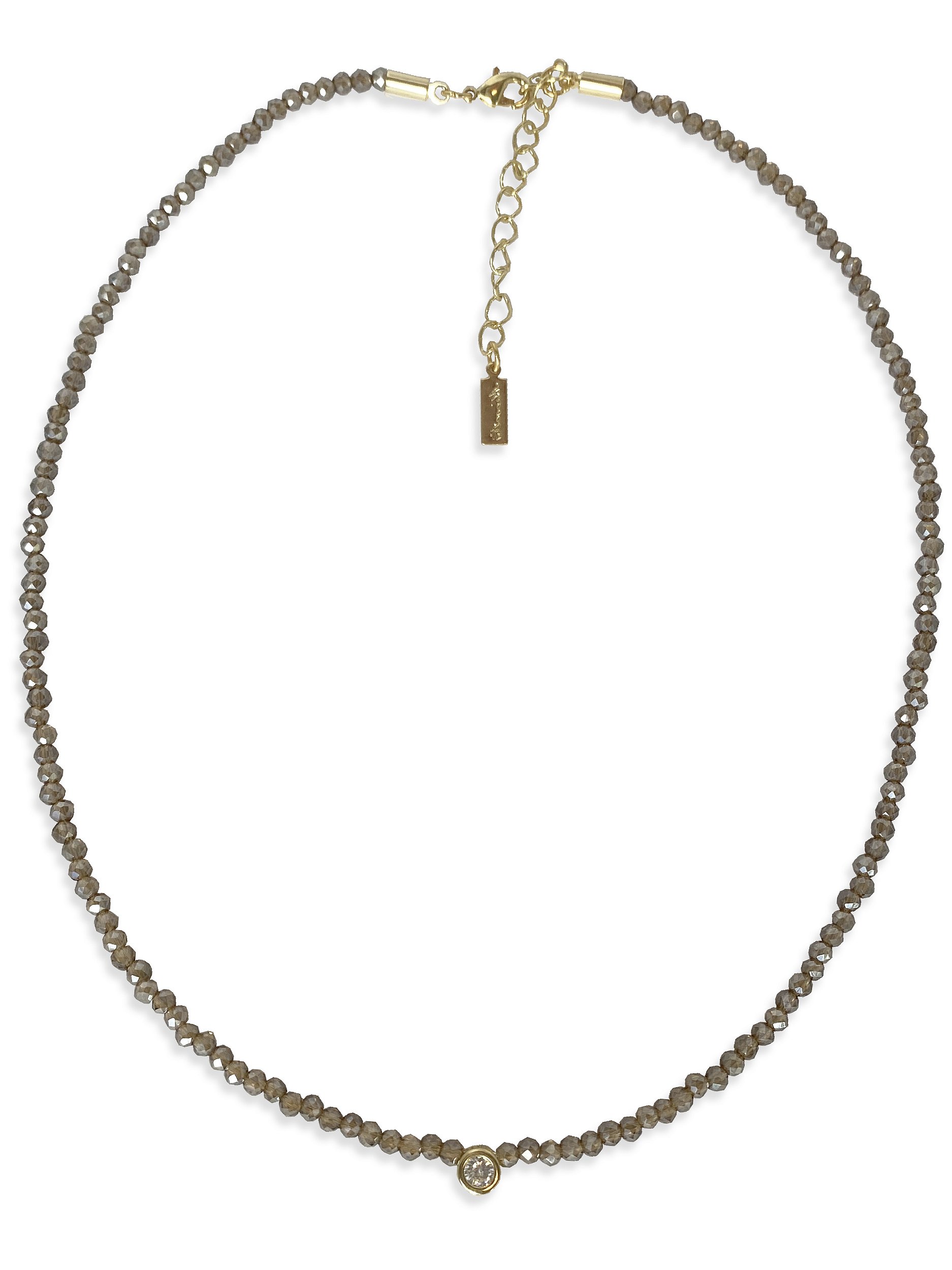 Colar confeccionado com mini cristais, delicados, em destaque com passante central de zircônia que traz sofisticação na medida certa.